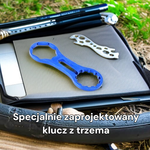 ● Specjalnie zaprojektowany klucz z trzema szczękami zapewnia stabilny i bezpieczny montaż osłony widelca rowerowego, minimalizując ryzyko uszkodzeń podczas instalacji.