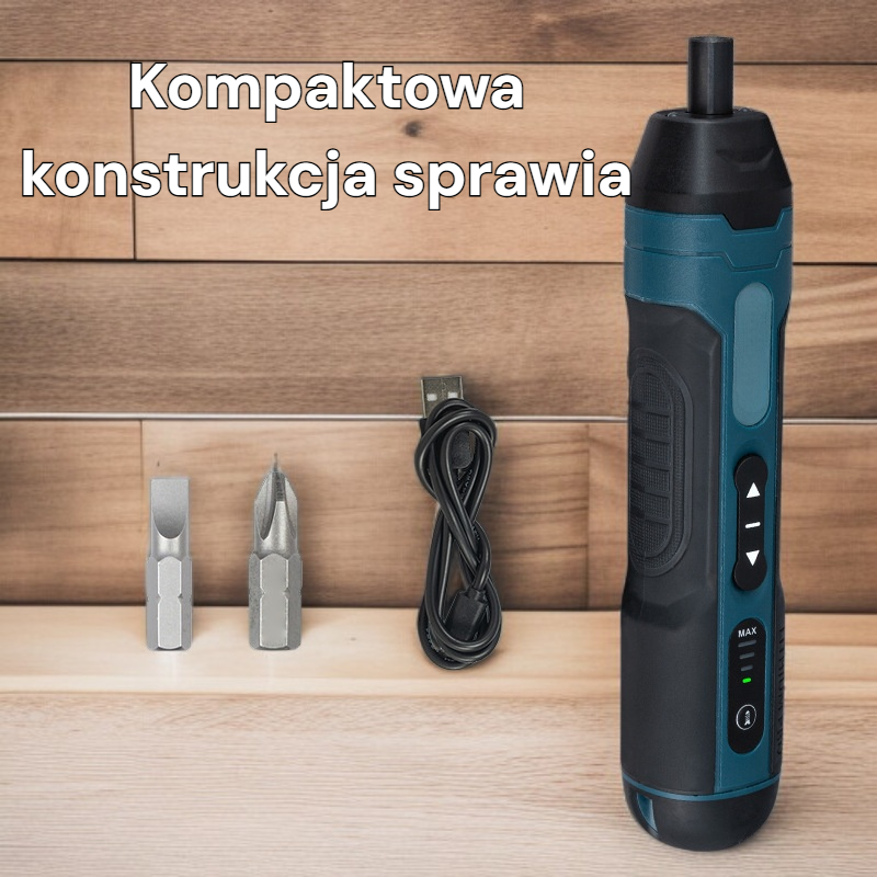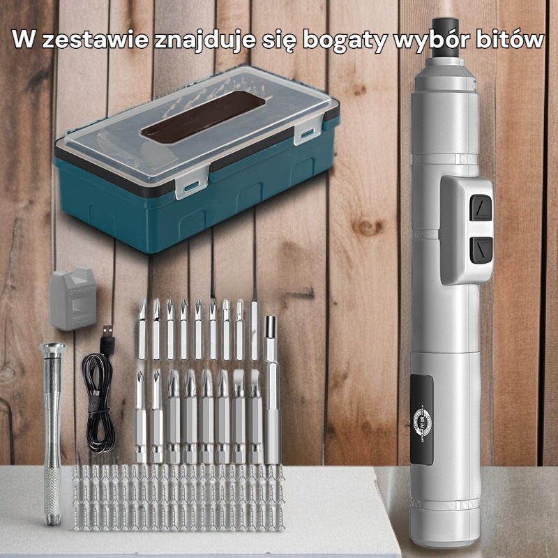 ● W zestawie znajduje się bogaty wybór bitów, dzięki czemu śrubokręt sprawdzi się w wielu zastosowaniach – od montażu mebli po drobne naprawy elektroniki.